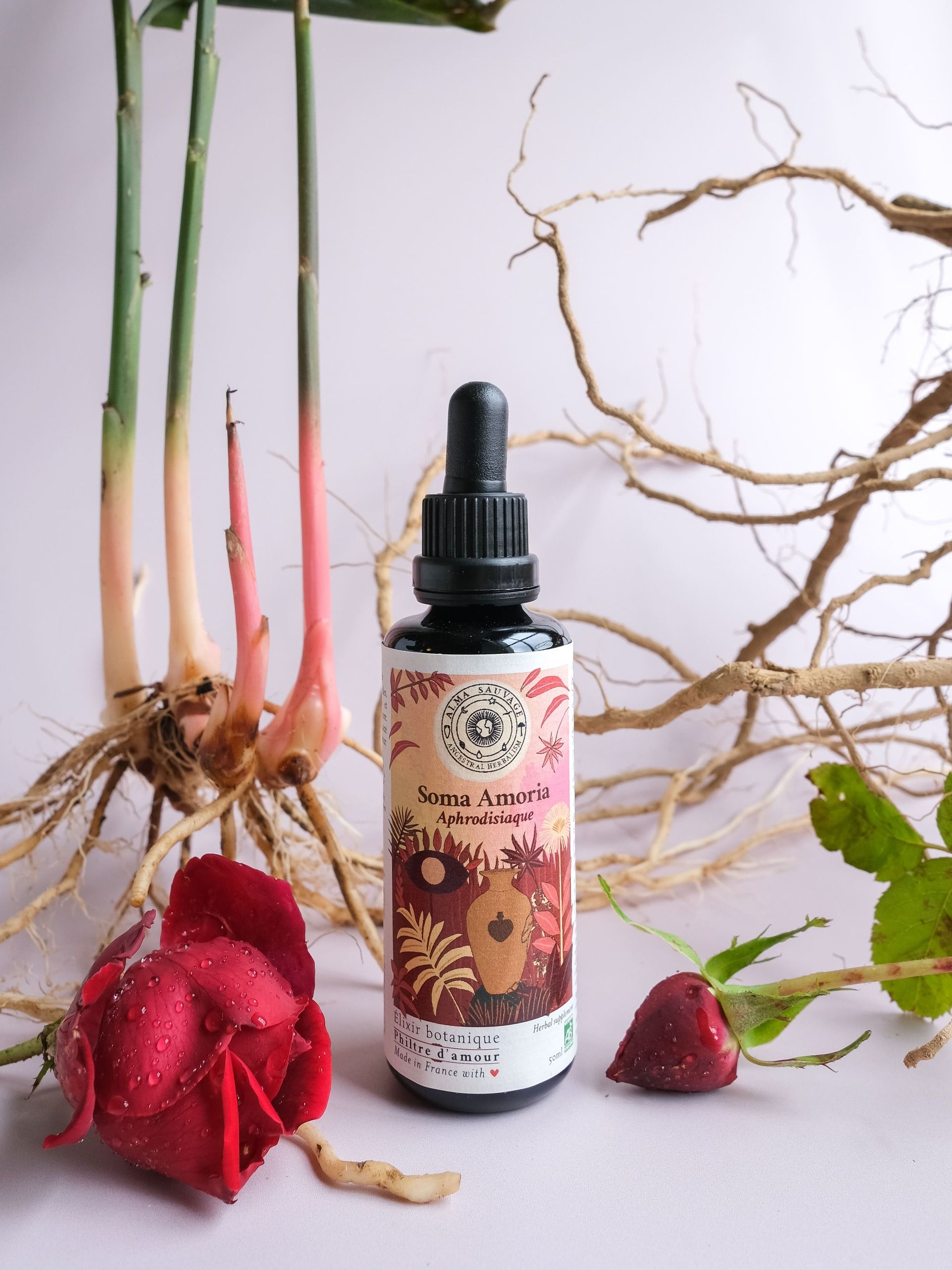Soma Amoria est un élixir sacré aphrodisiaque, pensé comme une invitation à l’éveil du désir, des sens et de l’élan vital subtil.