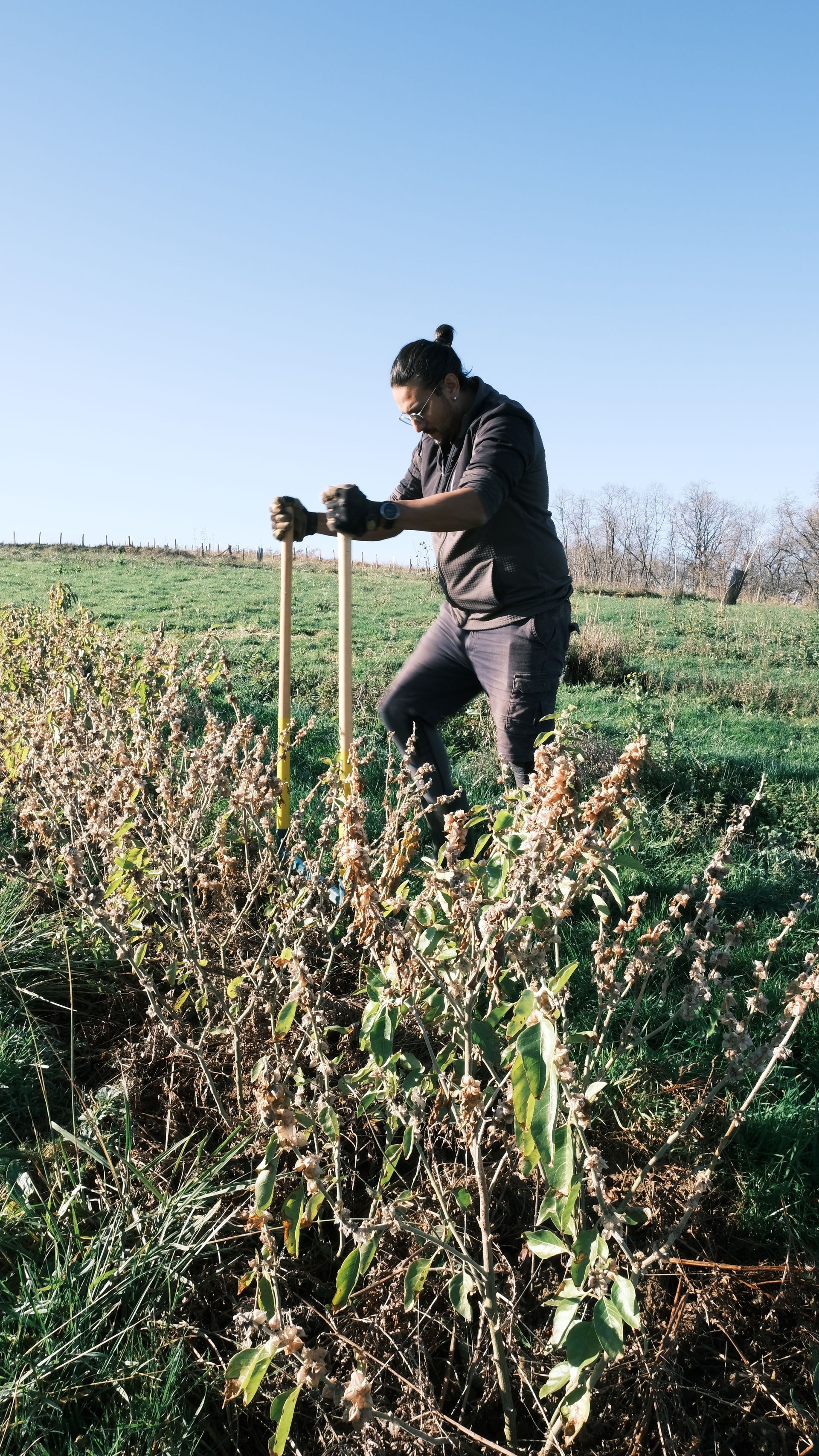 Récolte manuelle de l’Ashwagandha par Alex